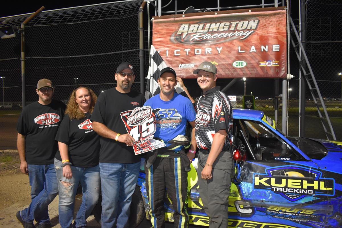 Close finishes provide great racing action as the season winds down at the Arlington Raceway. The Ottomotive Tire & Repair IMCA Modified feature was an awesome race with Dan Menk and Clint Hatlestad racing side by side throughout the race. Fifth place starter Chad Porter led the first three laps and then a yellow came out when JJ Reiemers and Todd Brockman tangled. That gave Hatlestad the opportunity to pass Porter at the start on the bottom side of th. Hatlestad was out front for the following 4 laps when another yellow came out which then enabled Dan Menk to pass Porter. After that restart Menk and Hatlestad raced the duration side by side around the track with Menk nosing ahead of Hatlestad for the win. Trent Lovrude followed the duo to take 3rd place and Porter picked up 4th.