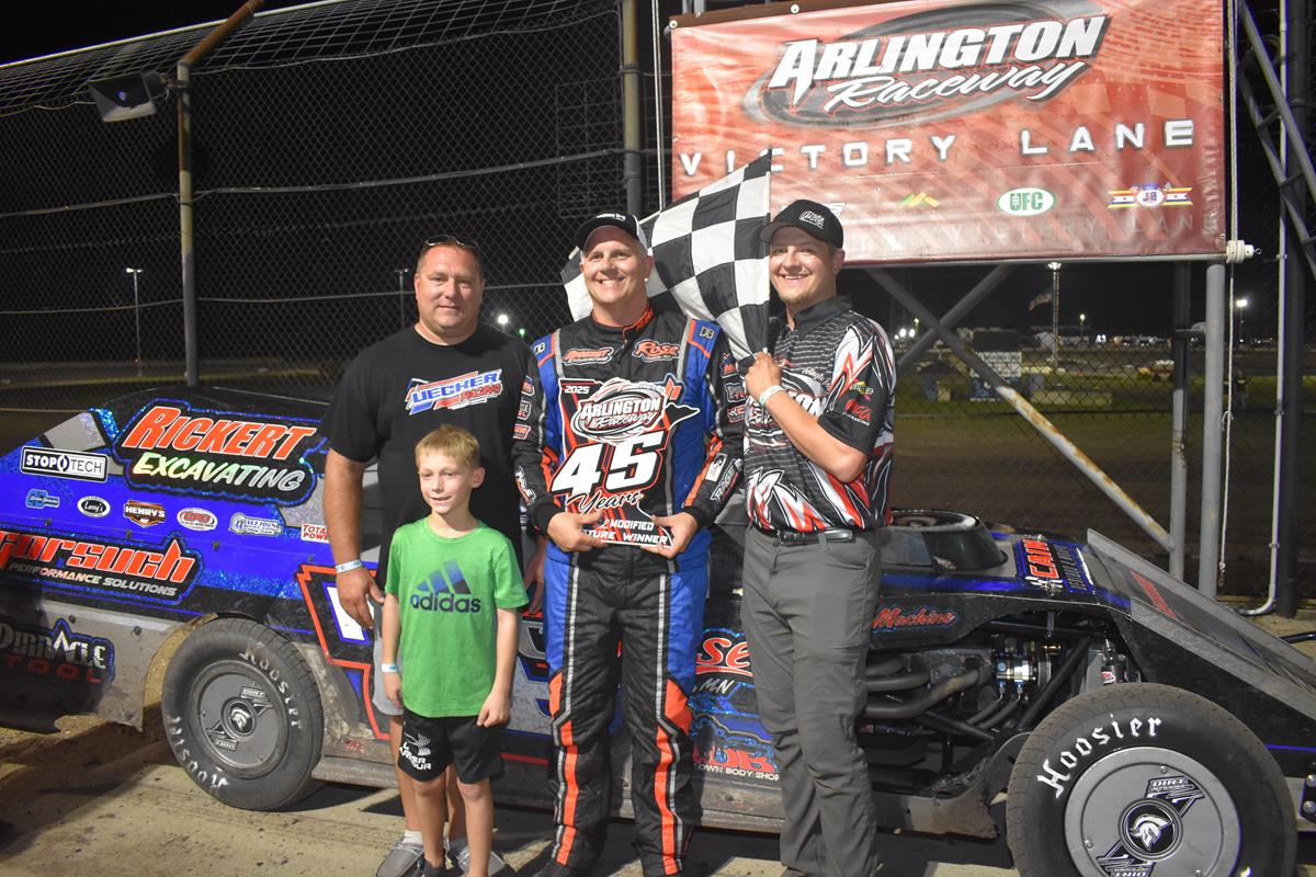 Cody Flewelling raced his best race of the year in the Olson Snowplowing & Lawn Care Outlaw feature leading every lap holding off Mark Oestreich and returning 39x driver Dan Eckblad. Eckblad hammered down and was able to pass Flewelling on the final lap to take the win from his. Cody took 2nd and Oestreich took 3rd.